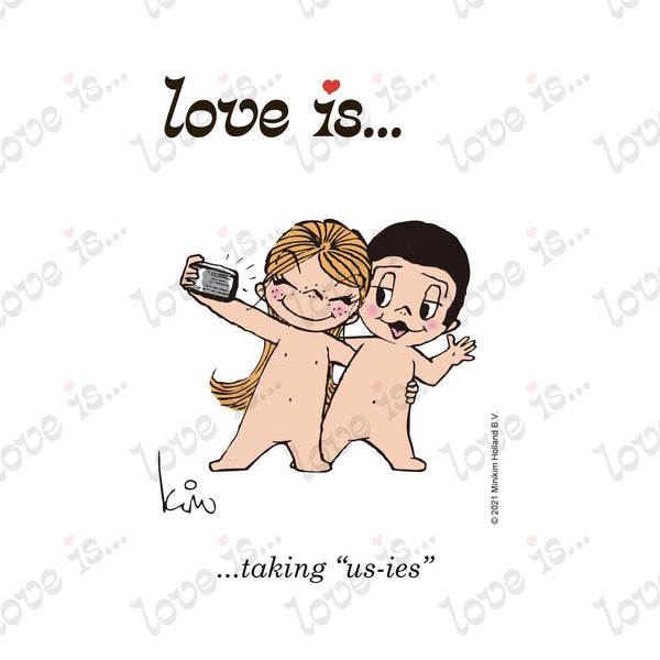 Love is... taking "us-ies" personalized poster art print by Kim Casali.